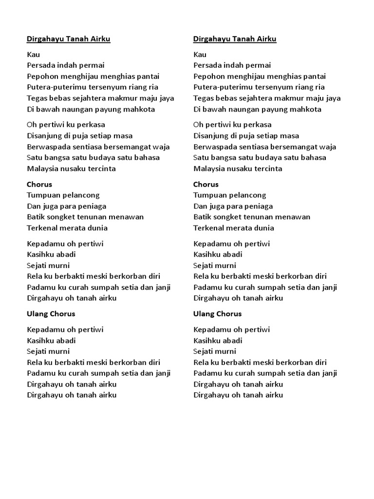 Aku pertahan sepenuh jiwa dan raga oh tanah airku. C D7 G Em. Sabah Tanah Airku English.